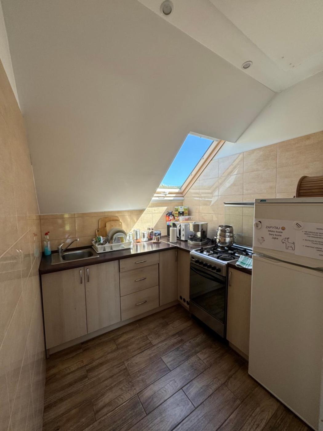 Pokój Trzyosobowy z prywatną łazienką. The triple room provides a coffee machine, a wardrobe, as well as a private bathroom featuring a shower. The triple rooms kitchenette, which features kitchenware and a microwave, is available for cooking and storing food. The triple room features heating and garden views. The unit offers 3 beds. Pokój Trzyosobowy - 3 osobowy. Powierzchnia pokoju ok.: 21 mkw. ;