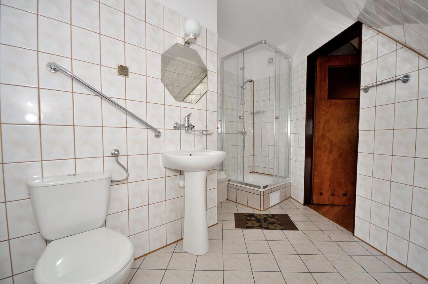 Pokój Czteroosobowy. Ten pokój czteroosobowy wyposażony jest w szafę oraz czajnik elektryczny i mieści łazienkę z prysznicem. Do dyspozycji gości są 4 łóżka. Pokój Czteroosobowy - 4 osobowy. Powierzchnia pokoju ok.: 35 mkw.