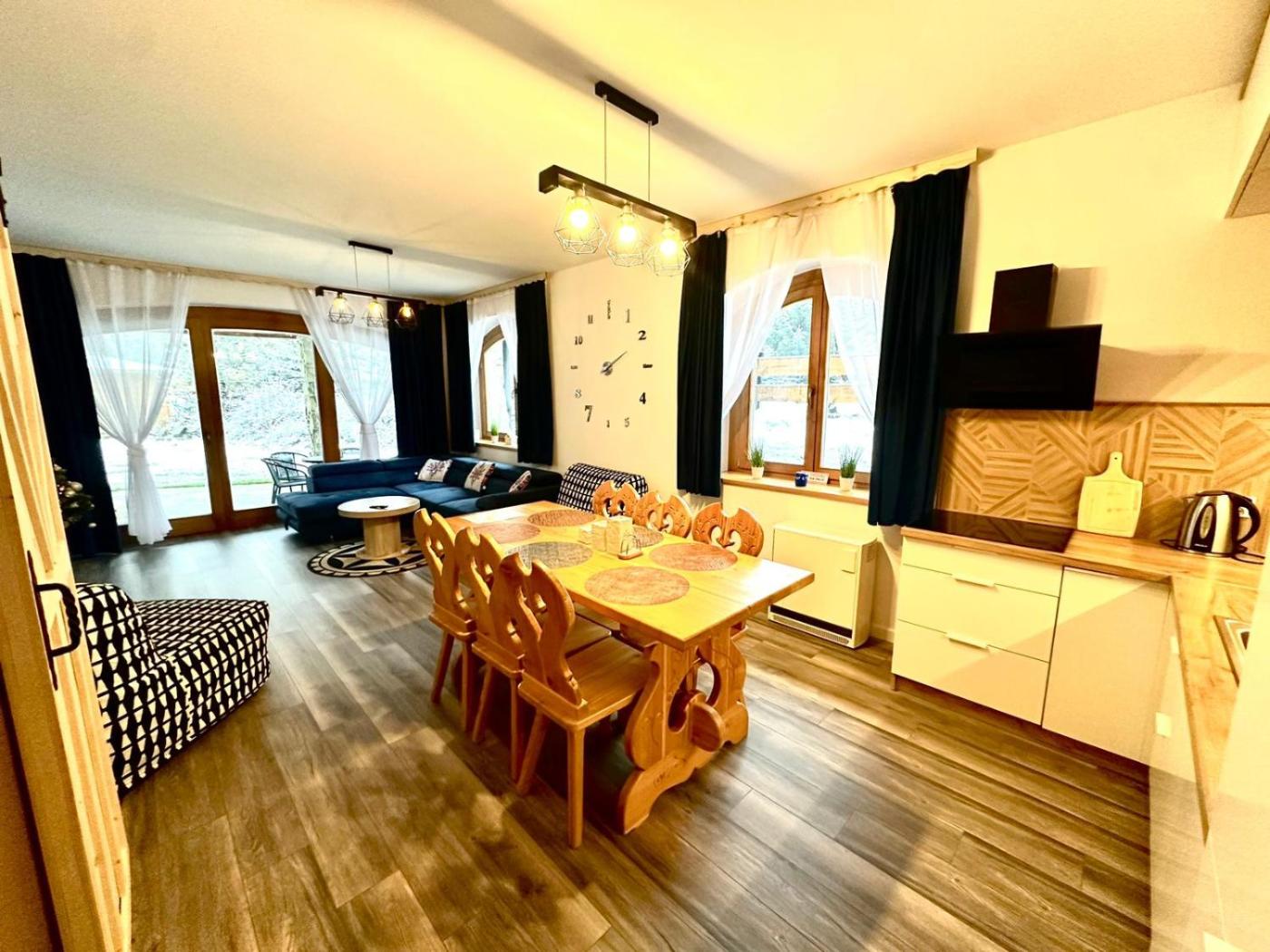 Apartament z 2 sypialniami. This apartments standout feature is the fireplace. This spacious apartment includes 1 living room, 2 separate bedrooms and 1 bathroom with a walk-in shower and free toiletries. Guests will find a stovetop, a refrigerator, a dishwasher and kitchenware in the kitchen. The apartment also features a barbecue. The apartment offers a flat-screen TV with streaming services, a washing machine, a private entrance, soundproof walls as well as garden views. The unit has 5 beds. Apartament - 8 osobowy. Powierzchnia pokoju ok.: 75 mkw.